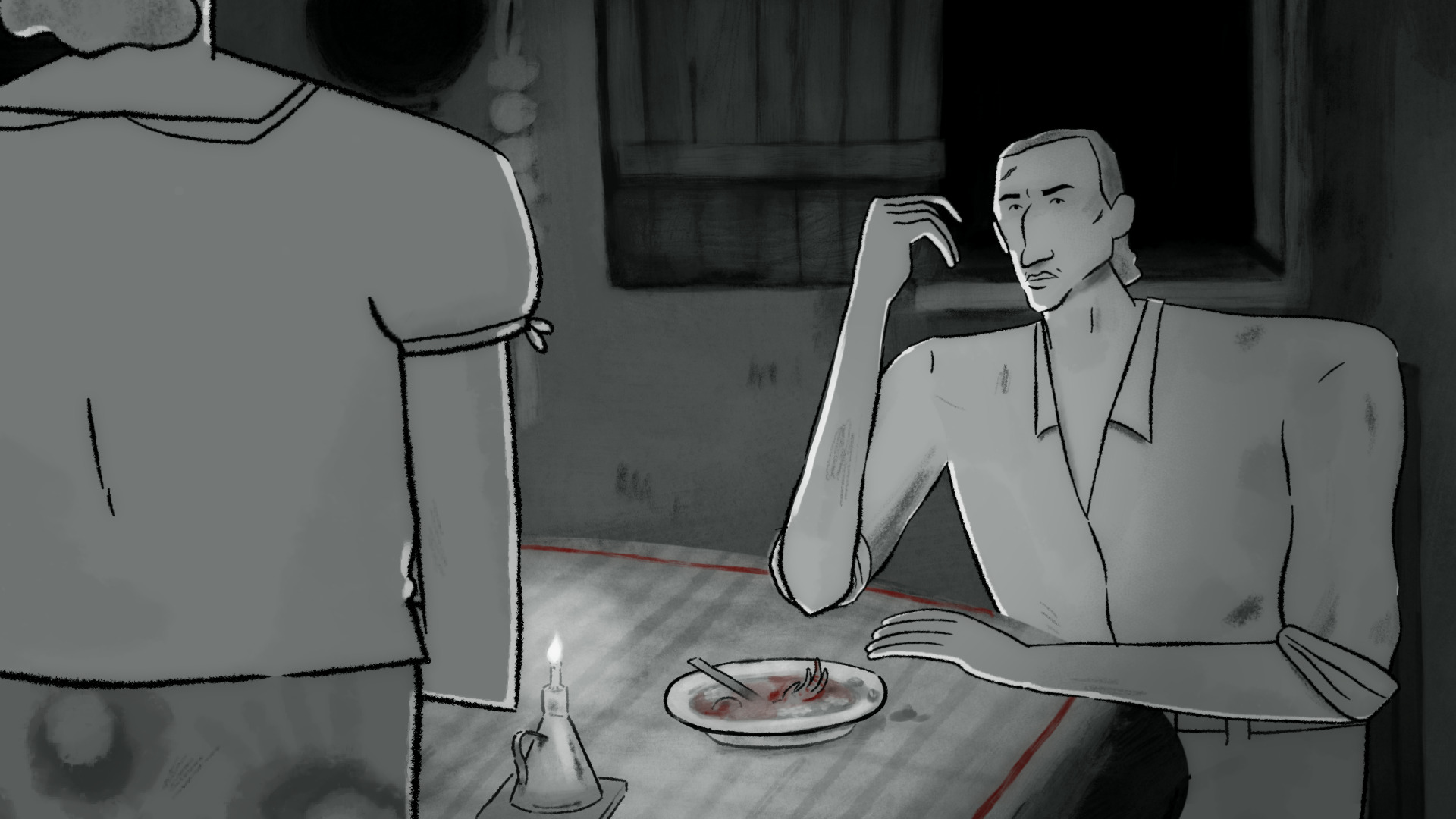 | FICHA TÉCNICA: Direção: Mateus Di Mambro | Assistente de Direção: Alana Barros / Tiago Oliveira | Roteiro Original: Jean Lima | Roteiro Adaptado: Mateus Di Mambro / Maíra Moura Miranda | Texto das Falas: Julia Morena | Produção: Tiago Oliveira | Assistente de Produção: Alana Barros ARTE – Direção de Arte: Maíra Moura Miranda | Cenários: Maíra Moura Miranda | Cenários (assistente): Giulia Estrela | Conceito de Personagem: Mateus Di Mambro ANIMAÇÃO – Storyboard e Animatic: Mateus Di Mambro | Rigging: Fabiano Bomfim | Riggings adicionais: Mateus Di Mambro Direção de animação: Mateus Di Mambro | Animadores: Alana Barros / Fabiano Bomfim / Fernanda Gambini / Jessé Alves / Joyce Nagamura / Kelvin Lima / Luiz Batalha / Mateus Di Mambro / Pedro Costa / Rafael de Freitas / Tiago Oliveira | Animação de Efeitos: Dango Costa / Fabiano Bomfim / Mateus Di Mambro / Rafael de Freitas | Produção de Linha: Alana Barros | Composição das Cenas: Alana Barros / Mateus Di Mambro | VOZES – Agostinho: Daniel Farias | Jaciara: Mariana Borges | Benedito: Harildo Déda | Mariinha: Andréa Nunes | Curacanga: Maíra Moura Miranda SOM -Música: Celo Costa | Sanfona: Celo Costa | Violino: Celo Costa | Foley: Napoleão Cunha | Edição e desenho de som: Napoleão Cunha | Gravação das Vozes: André Tavares | Mixagem: Napoleão Cunha | Trilha dos Créditos: “Rabecando” Composição: Marcelo Fonseca | Violino: Marcelo Fonseca | Percussão: Marcos Suzano PÓS-PRODUÇÃO – Edição: Mateus Di Mambro | Ajuste de cor: Maíra Moura Miranda | Design Gráfico: Maíra Moura Miranda |